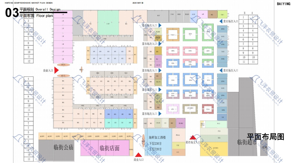 長合市集坐落于海豐縣傳統(tǒng)街區(qū),項目以"妙街食集"為主題,深度挖掘在地廟宇文化與嶺南建筑特色,通過IP形象打造、非遺活動植入與特色美食聚合,構建一個既能滿足日常采購需求,又能成為文化體驗目的地的創(chuàng)新型市集空間。