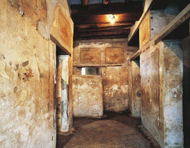 這是人類最早形成的商業(yè)街市之一,大街兩旁有酒館、商店、水果攤、手工作坊等。一家商店墻上寫著出售干雜貨、好酒的廣告;另一家商店墻上寫著橫幅標語“水果商販支持普里斯庫擔任高級行政官”。在一個面包作坊,1900年前烤好的面包如今仍舊放在烤箱中。一家水果攤遺址旁邊還有提醒來客注意的“小心狗咬”字樣。